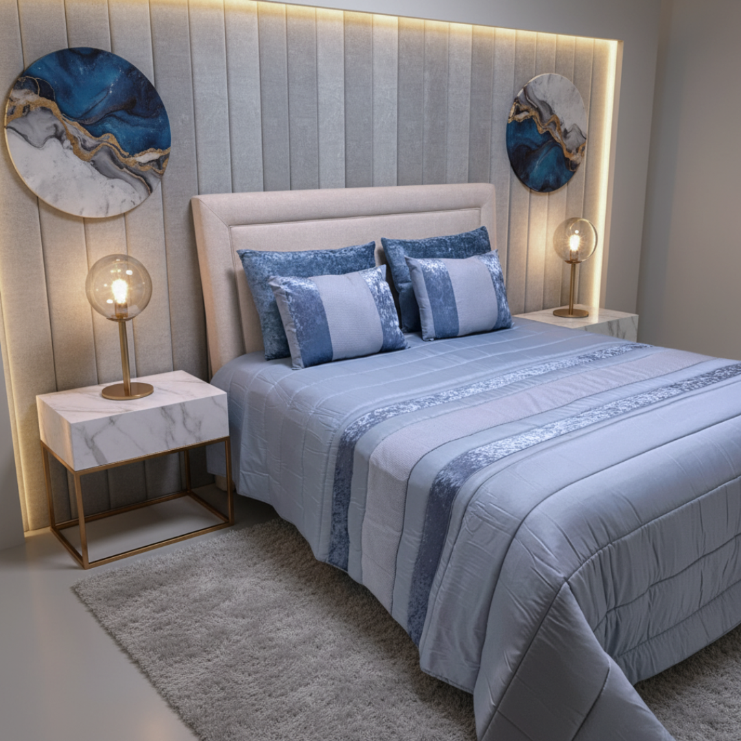 Edredón con apliques estampados y terciopelo azul Ruby II