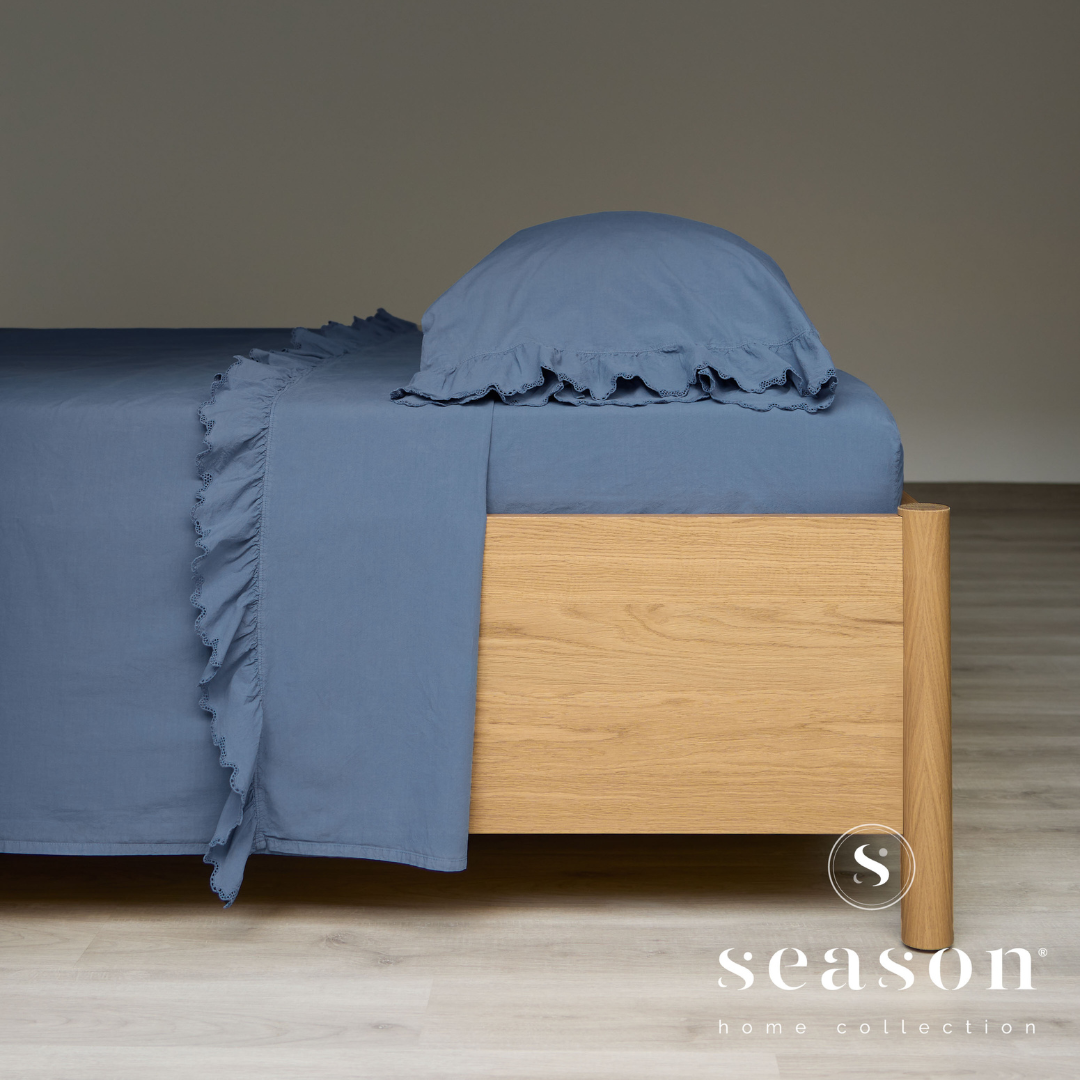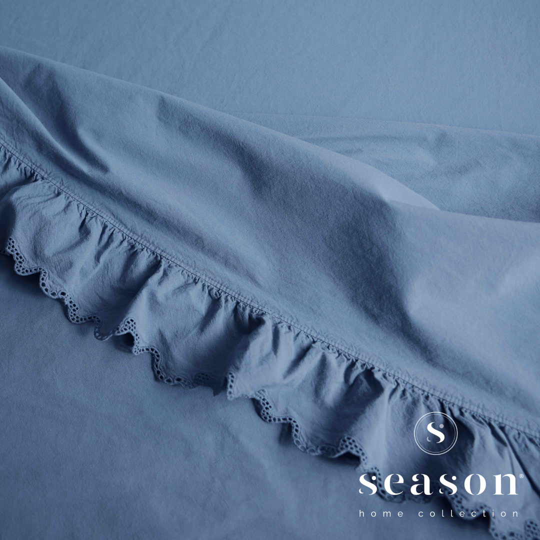 Macio e envolvente, transforma o descanso numa experiência reconfortante, com pequenos acabamentos que acrescentam movimento, charme e uma elegância discreta e romântica.