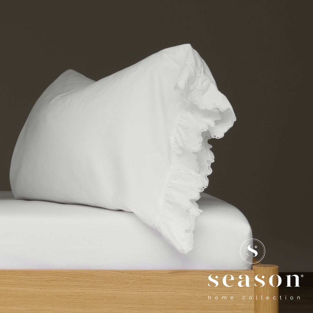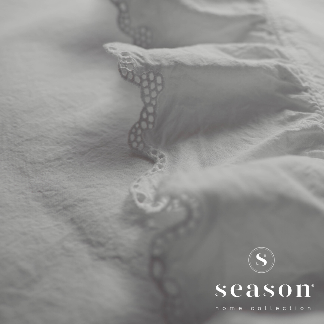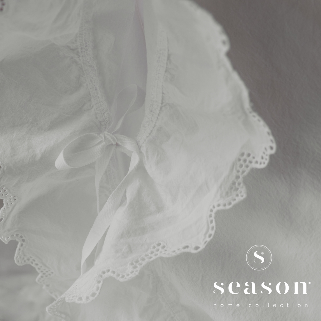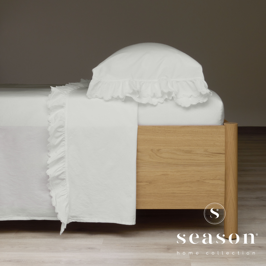 Macio e envolvente, transforma o descanso numa experiência reconfortante, com pequenos acabamentos que acrescentam movimento, charme e uma elegância discreta e romântica.